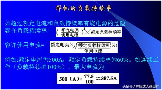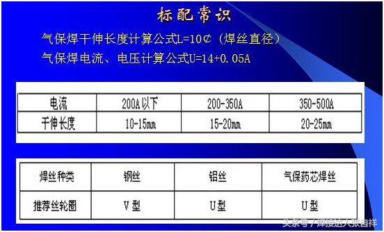 除了以上干伸長度對(duì)焊接的要求以外,對(duì)于送絲輪的使用可以參照上圖,焊接碳鋼、不銹鋼等實(shí)心焊絲采用的送絲輪為V型,焊接鋁合金或藥芯焊絲等材質(zhì)較軟的焊絲可采用U型輪,如果選擇錯(cuò)誤,可能會(huì)出現(xiàn)送絲不暢,參數(shù)匹配有誤等問題,另外,對(duì)于焊絲來講,每一種焊絲都有其焊接范圍,比如,如果采用1.2Mm焊絲,要想焊接500A的電流,就是把調(diào)節(jié)電流放到最大500A,也只能出300多安的電流就是這個(gè)道理,要想焊到500A,只需要不絲徑加到1.6或更粗的焊絲即可。這也是防止焊機(jī)超負(fù)載使用的一個(gè)方法,比如采用60%占載率的氣保500焊機(jī),如果長時(shí)間焊接,那么根據(jù)公式就只能得出380A以內(nèi)可以長時(shí)間焊接,為了避免焊工誤操作,可以選用1.2mm絲徑就不會(huì)出現(xiàn)超負(fù)載應(yīng)用了,具體公式算法及焊絲需用電流表如下: