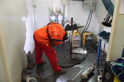 本次大賽的比賽內容,在題目上較上一屆難度有所增加。理論試題是在十套題庫中抽出一套作為比賽試題,雖然如此,在理論試題考試現場,開考才十分鐘便有幾個學生答題完畢,可見選手準備很充分。實操考試,69名選手分兩輪進行比賽,需在4個小時之內完成三組項目的打磨、組對、焊接、清理工作,意味著選手的操作需更加敏捷、流暢,對選手提出了更高的要求。賽題難點為仰焊、管板和管管焊接。雖然仰焊難度較大,但歷屆大賽手工焊條仰焊項目都必不可少,各家均已基本充分掌握技術,因此仰焊項目成績應該都不會特別差。管板和管管焊接雖然難度也較大,但好在是全氬焊接,管板焊接由于夾角較深,要想保證全部熔透不出現凹陷,難度還是有的。以上兩項可能會在比分上拉開距離。第三項是手工焊條仰角焊和氣保立焊。這里著重講氣保焊接。對于氣保焊接立焊,首先以電流電壓匹配得當為前提,在打底時主要是為了保證背面焊透,但在打底階段采用之字形行走的方法,擺在間隙的兩面較多則很難使背面的焊縫凸出,如鈍邊較薄(0.5mm以內)操作得當可焊平或凸出0.5mm左右,如果擺動寬度較大就會出現凹陷等缺陷,如不加擺動直推或小幅擺動,雖然能保證背面成型,但焊縫的正面會出現焊縫中間較高有少許夾溝。如不加清理即填充會引起熔合不好。所以它的難度綜合講就是,由于采用的是小電流焊接,在保證背面成型的基礎上,還要保證正面每一層焊縫的平整度,以免在填充和蓋面過程中出現夾渣、未融合等缺陷。