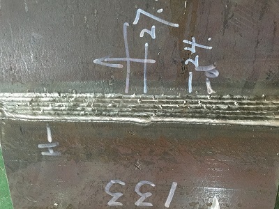 第一模塊由四組低碳鋼試件組成,10mm對接仰焊板(如圖1)、管管對接45度固定(如圖2)、16mm板橫焊(如圖3)和板立角焊(如圖4),焊接方法要根據抽簽確定,這四組低碳鋼試件中,從技術層面上講,全手工焊條焊接的仰焊板和45度管管對接焊難度較大,由于仰焊板在歷屆焊接技能大賽的賽項上都必不可少,所以在操作技能上各家都有所掌握,所比的是誰家的基本功更扎實,技術掌握得更到位。45度管管對接電弧焊的難點個人認為有兩點,第一是打底階段每一個接頭的處理及焊接后在保證背面成型好的基礎上,焊縫正面是否有較深夾溝或焊肉下垂的現象,從而影響蓋面后的焊縫內在質量。第二個難點是蓋面焊接要做到焊縫對咬邊的控制,通過焊接過程中的斜拉擺動來控制好熔池走向,使焊肉不出現下垂和咬邊。從本次大賽的45度管管焊的總體成績來看,由于焊接過程中允許進行電動工具打磨處理,所以對于內在質量的控制都做得還不錯,65名選手中射線探傷0分的只有8人。選手中外觀分數丟分的較多,滿分50分中,最高得分也只有36分,可見該項目還是有一定的難度。