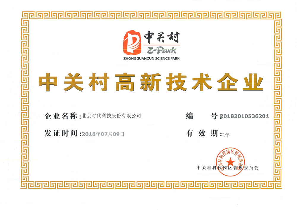 | 2020-12 | 高新技術企業證書 | 北京市科學技術委員會 |