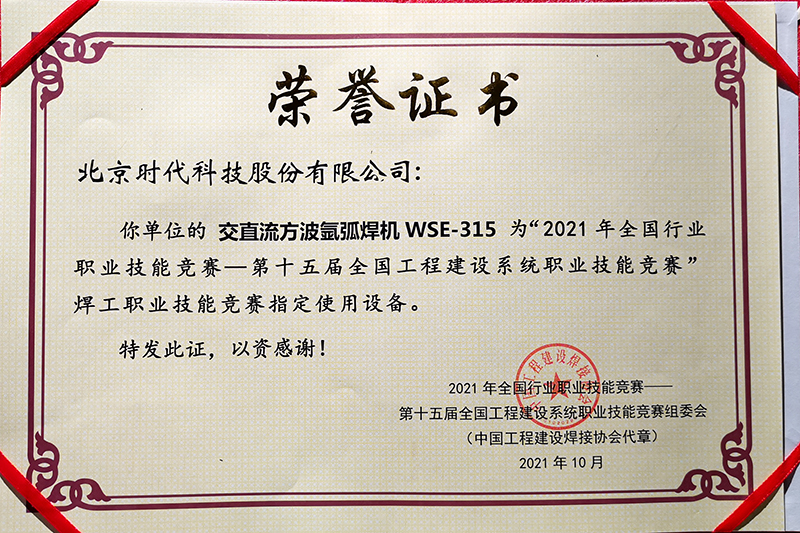 | 2021-12 | 第十五屆全國工程建設系統職業技能競賽指定用機 | 中國工程建設焊接協會 |