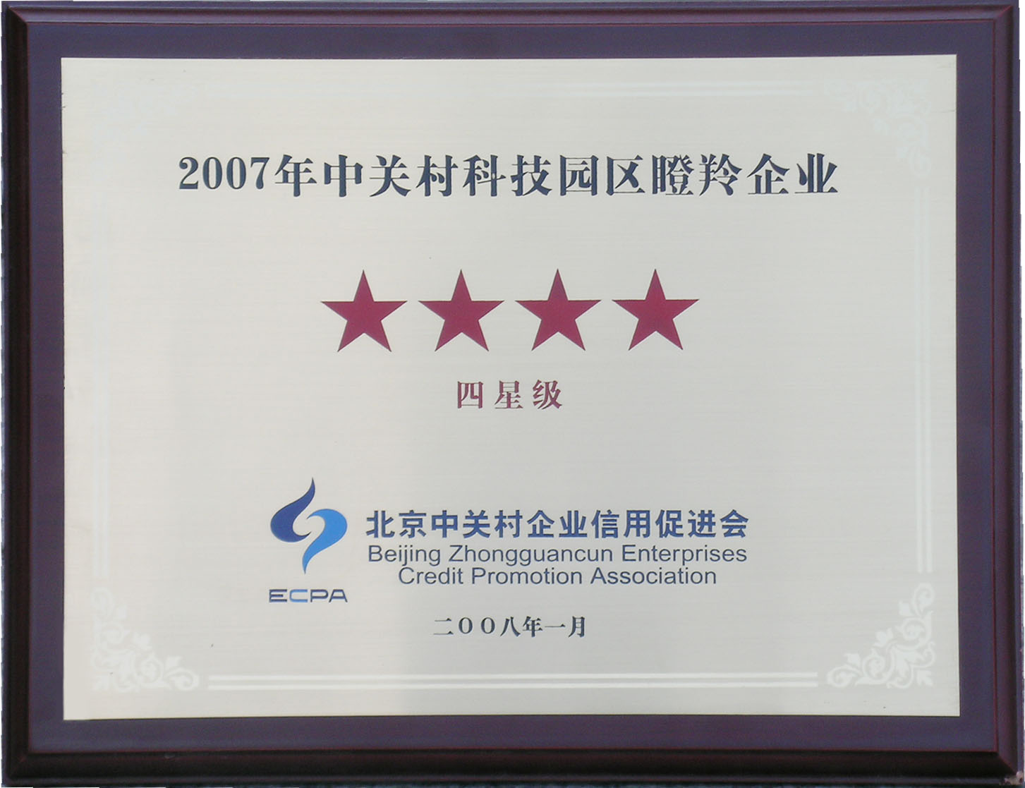 | 2008-07 | 2007年中關村科技園區瞪羚企業 | 中關村企業信用促進會 |