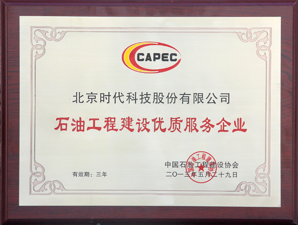 | 2013-08 | 石油工程建設優質服務企業 | 中國石油工程建設協會 |