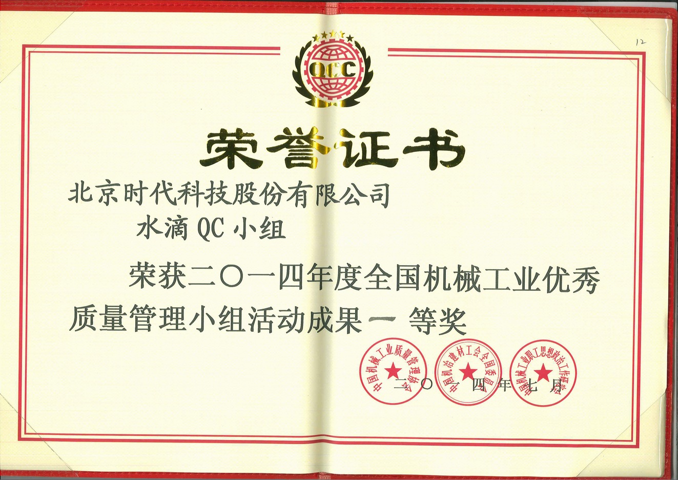 | 2014-08 | 2014年全國機械工業優秀質量管理小組獎 一等獎 | 中國機械工業質量管理協會 |