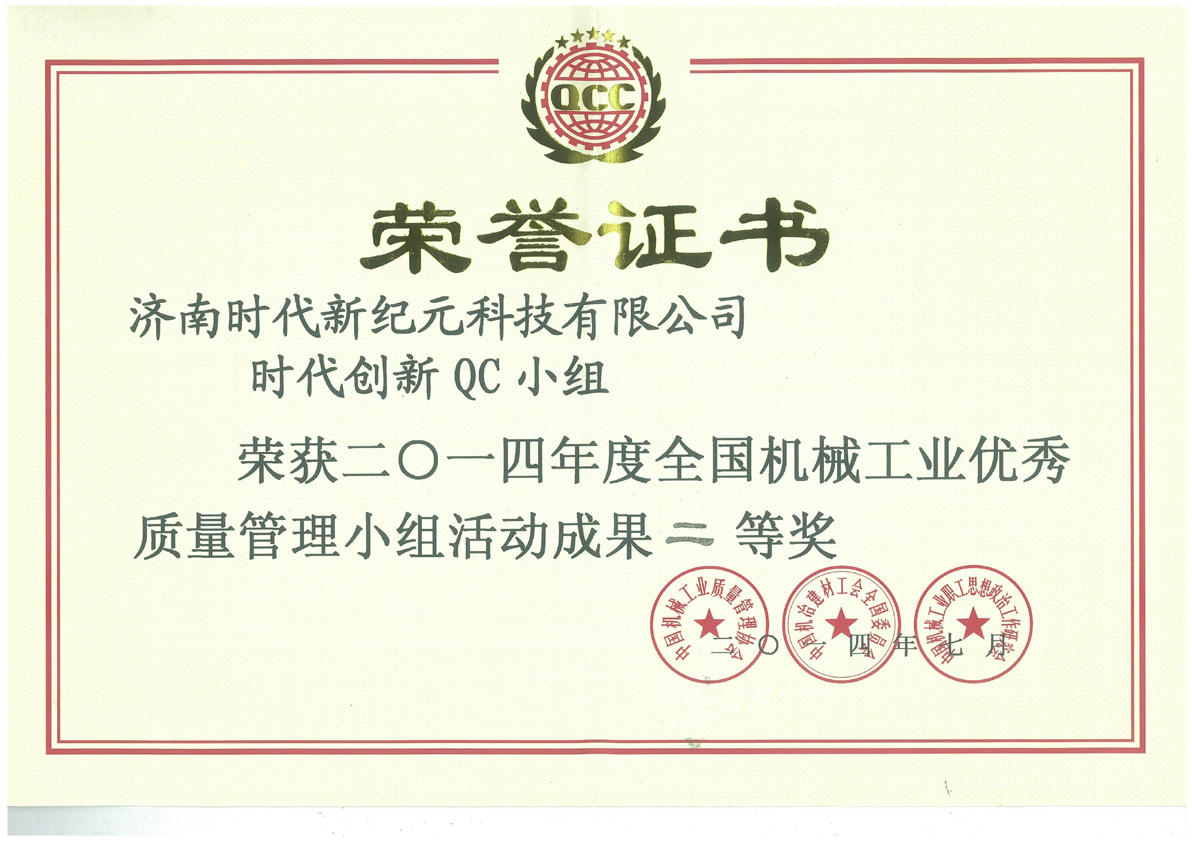 | 2014-08 | 2014年全國機械工業優秀質量管理小組獎 二等獎 | 中國機械工業質量管理協會 |