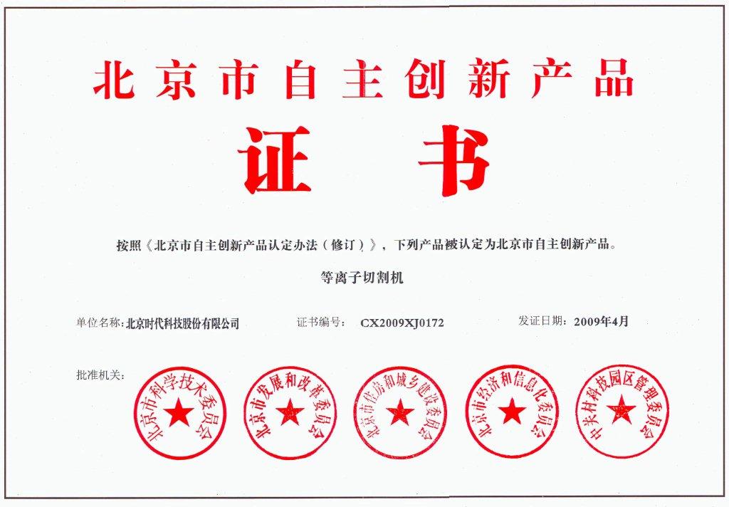 | 2009-04 | 北京市自主創新產品(等離子切割機) | 北京市科學技術委員會 |