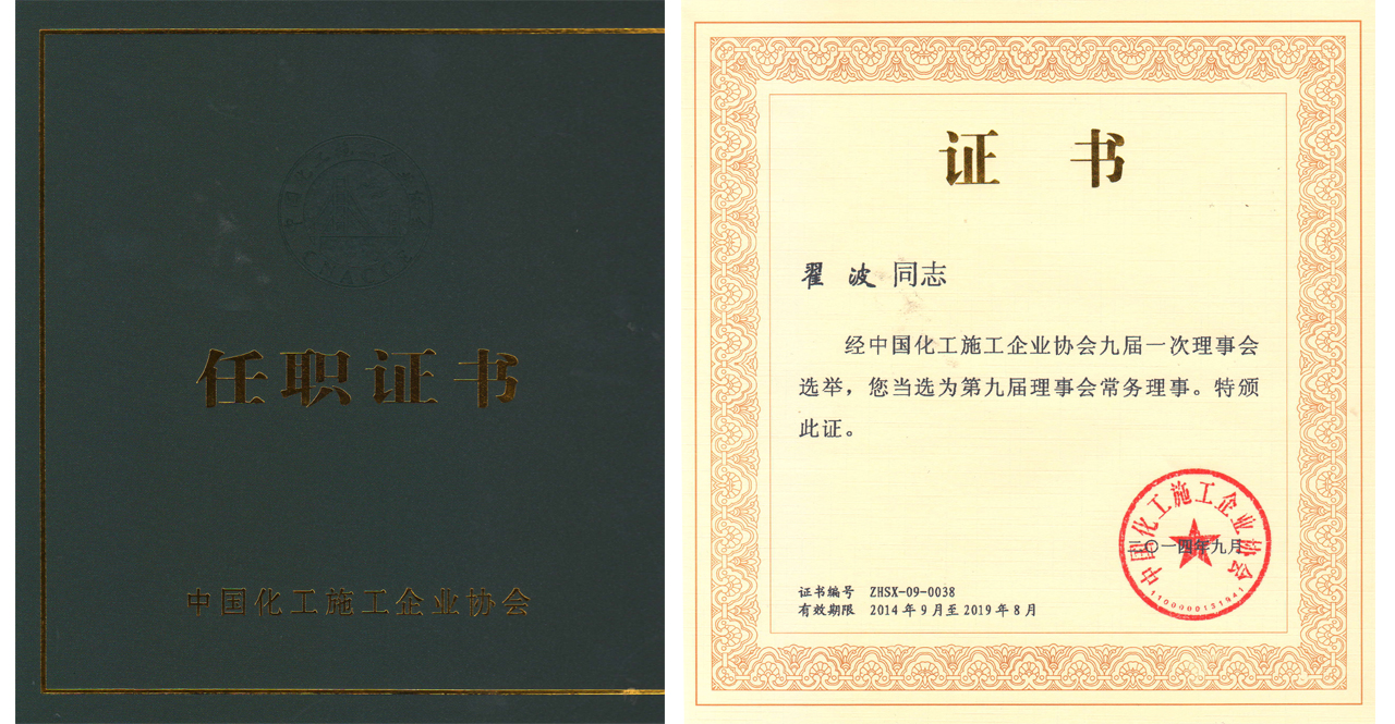 | 2014-09 | 中國化工施工企業協會常務理事 | 中國化工施工企業協會 |