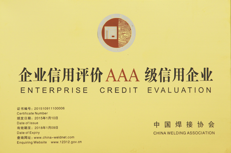 | 2015-03 | 企業信用評價AAA級信用企業 | 中國焊接協會 |