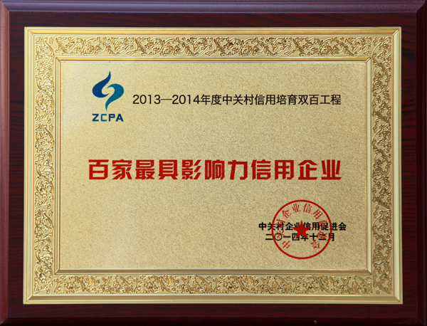 | 2014-12 | 百家最具影響力信用企業 | 中關村企業信用促進會 |